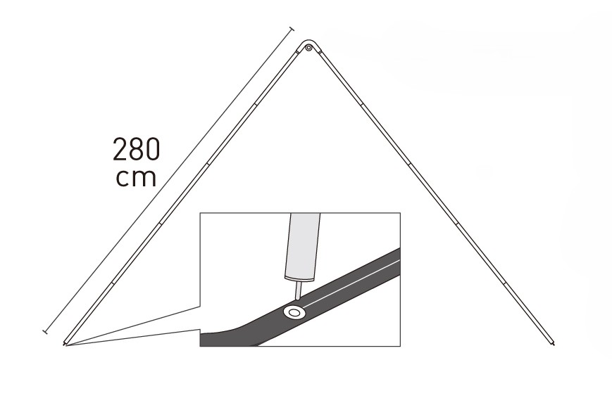 ツインピルツフォーク標準付属のポールに変えて二又フレームを使用することにより、シェルター内のスペースが有効活用できます