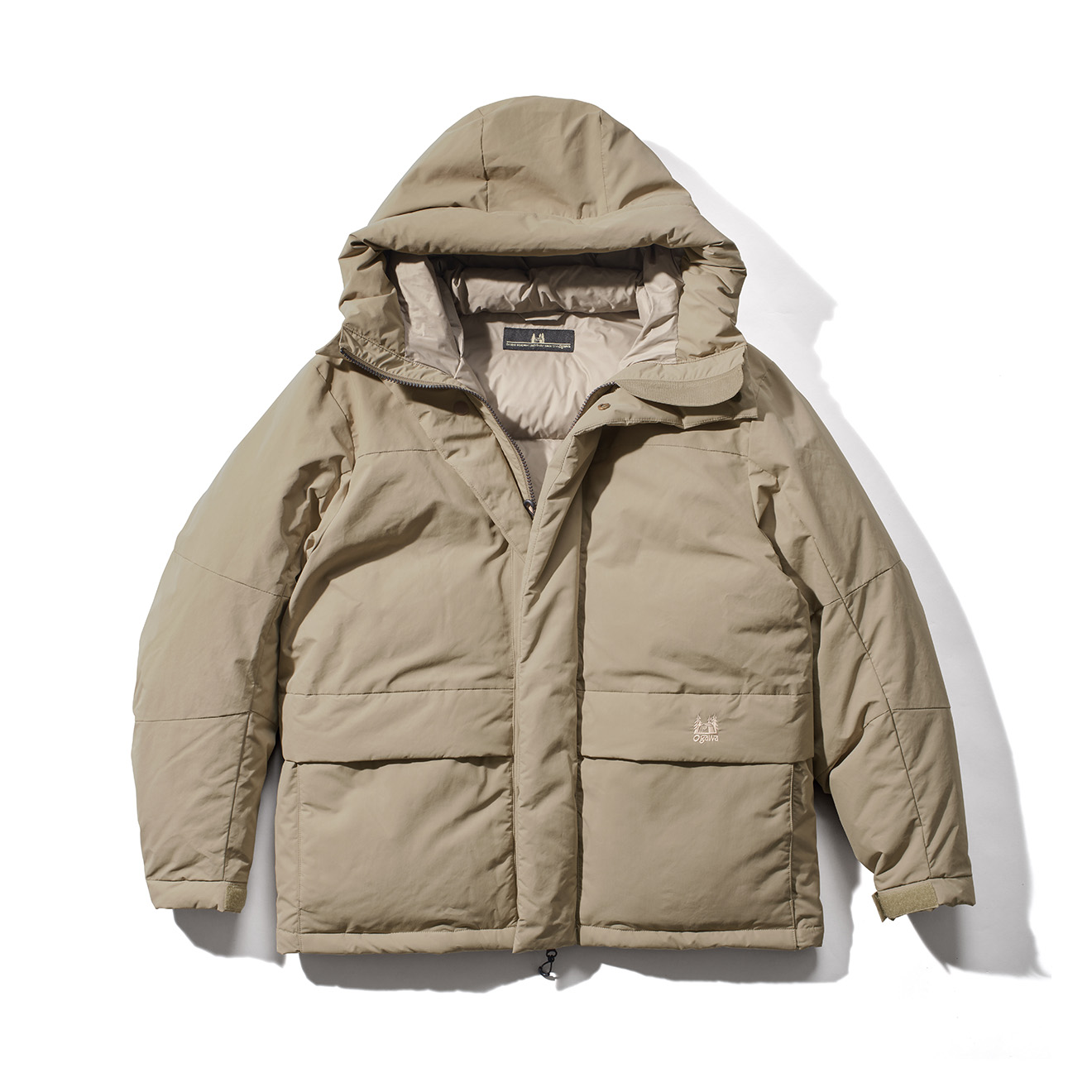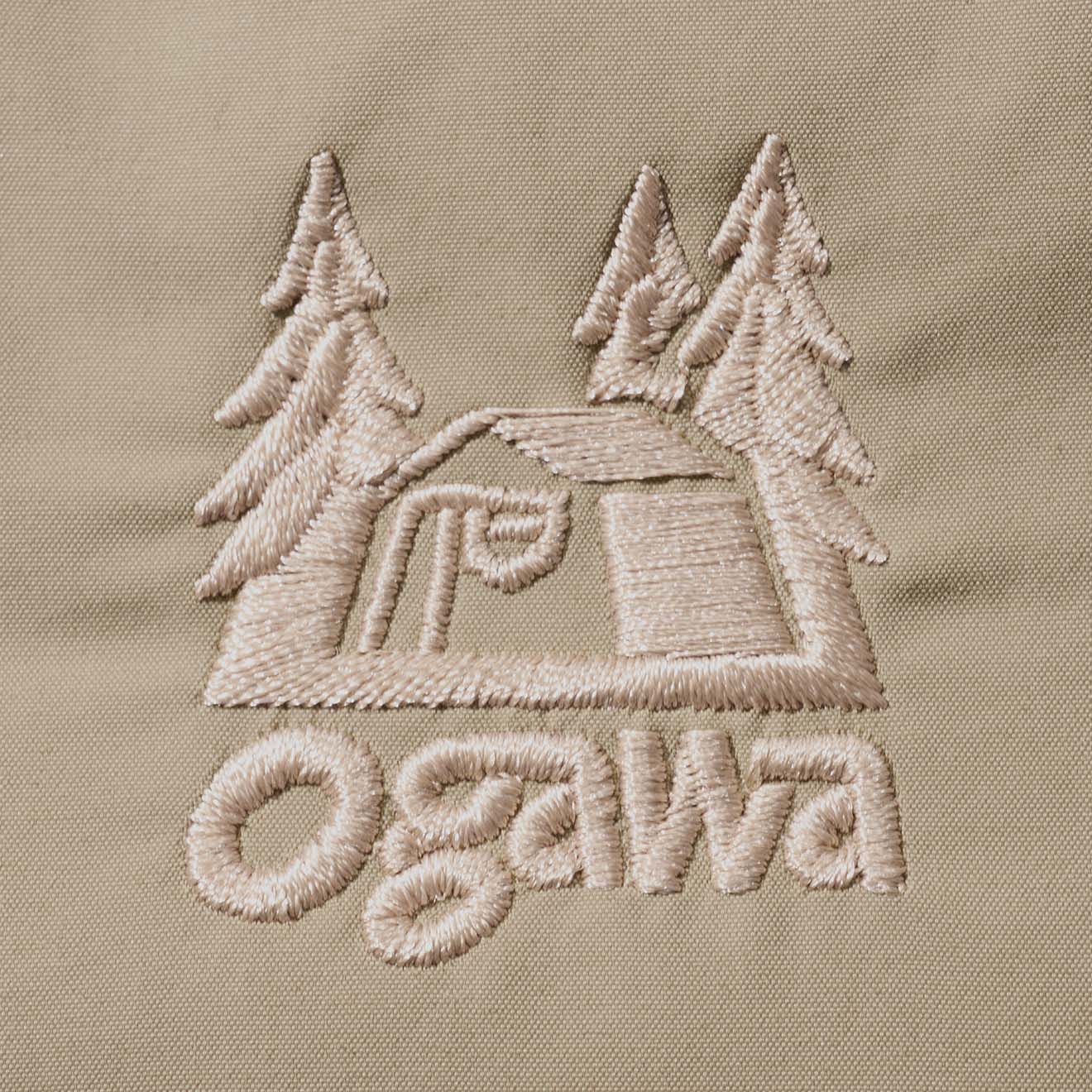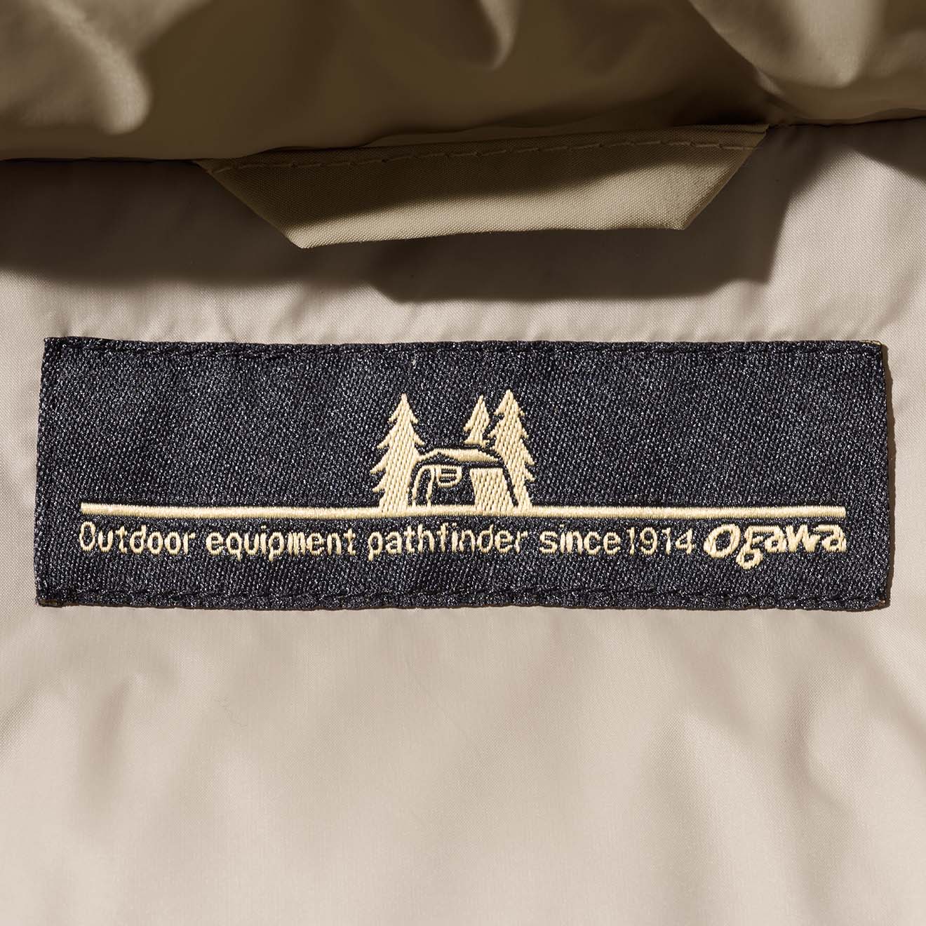左のポケットフラップにはロッジロゴ刺しゅう、襟元には織ネームつき