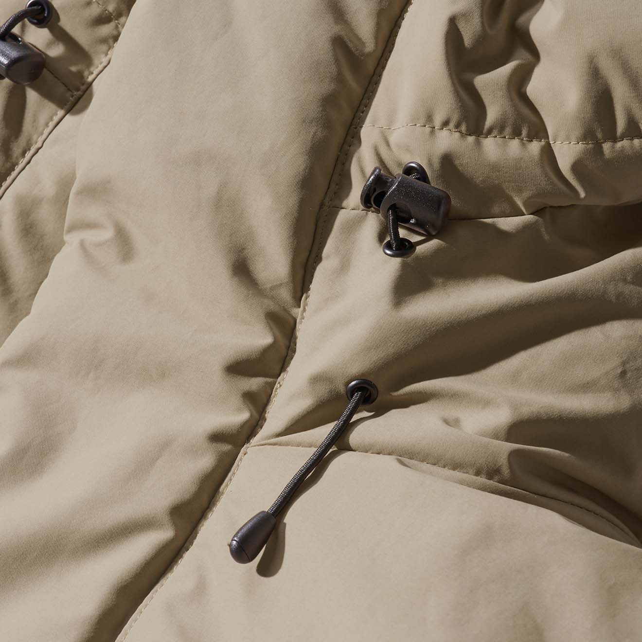 裾と首元はドローストリングコードつき。冷気をシャットダウンできます。