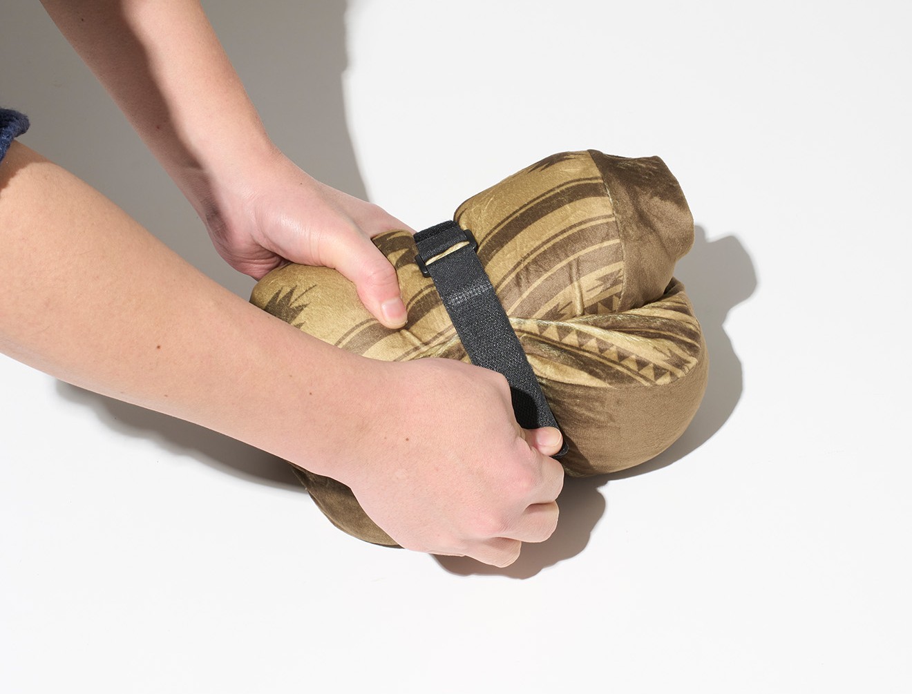 くるくると丸めて収納します。コンプレッションベルトつき。