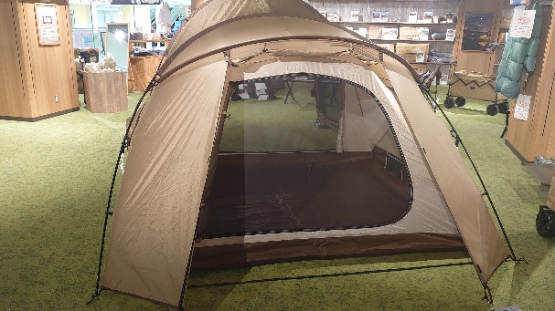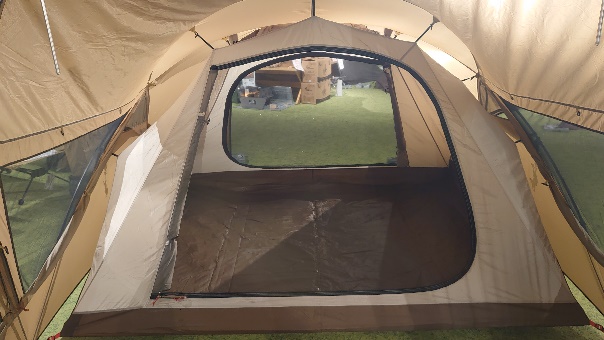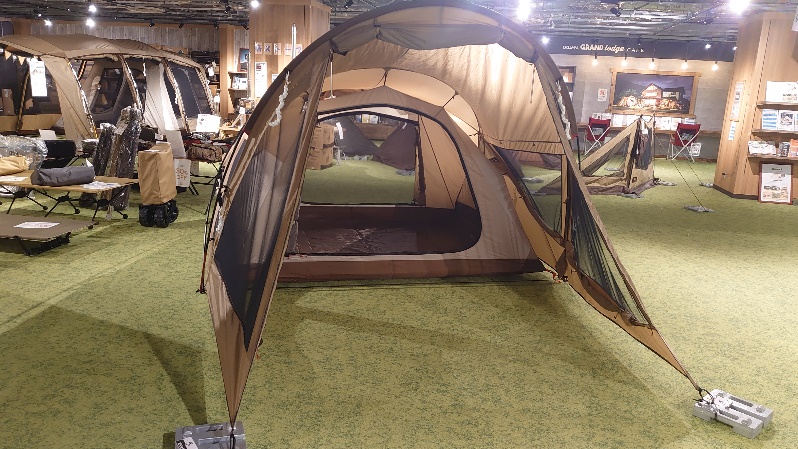 張り出しポール付属、正面張り出しは幕を広げる事でより広く張り出すことが出来ます。