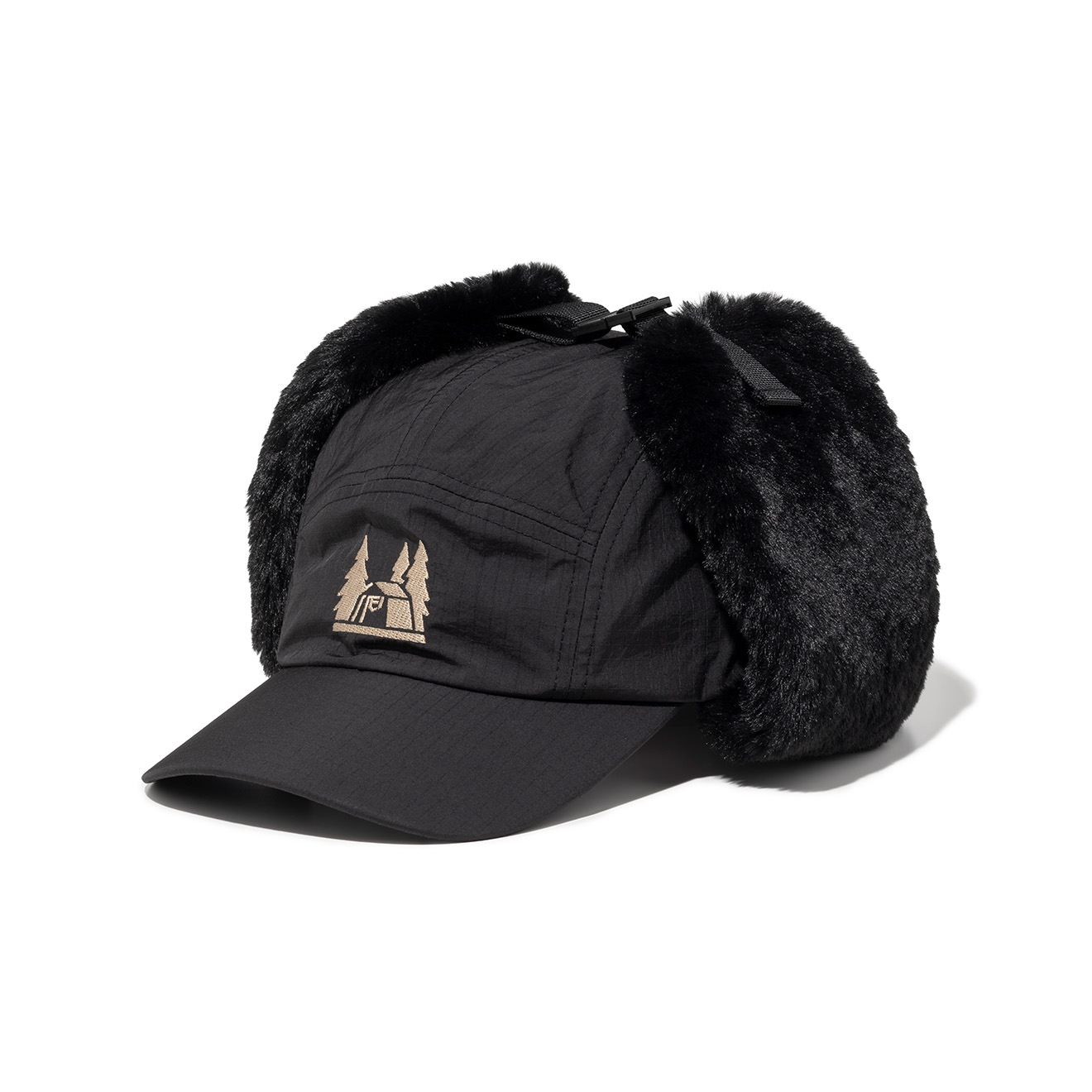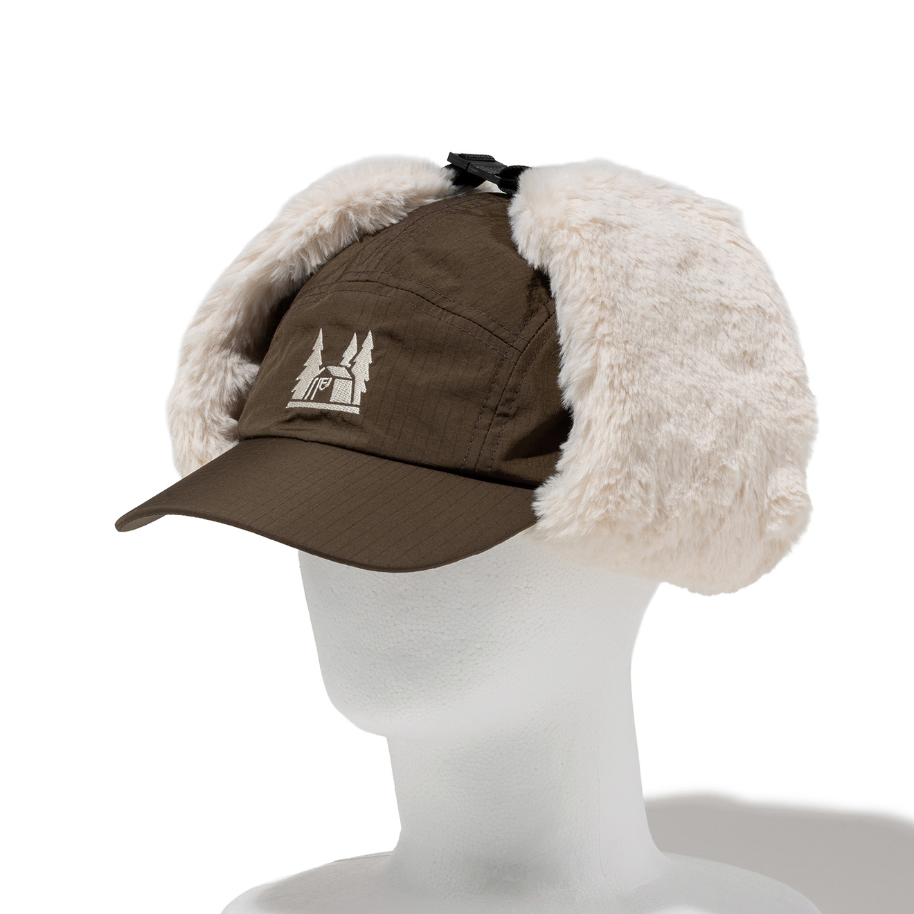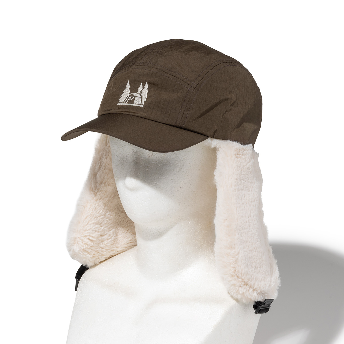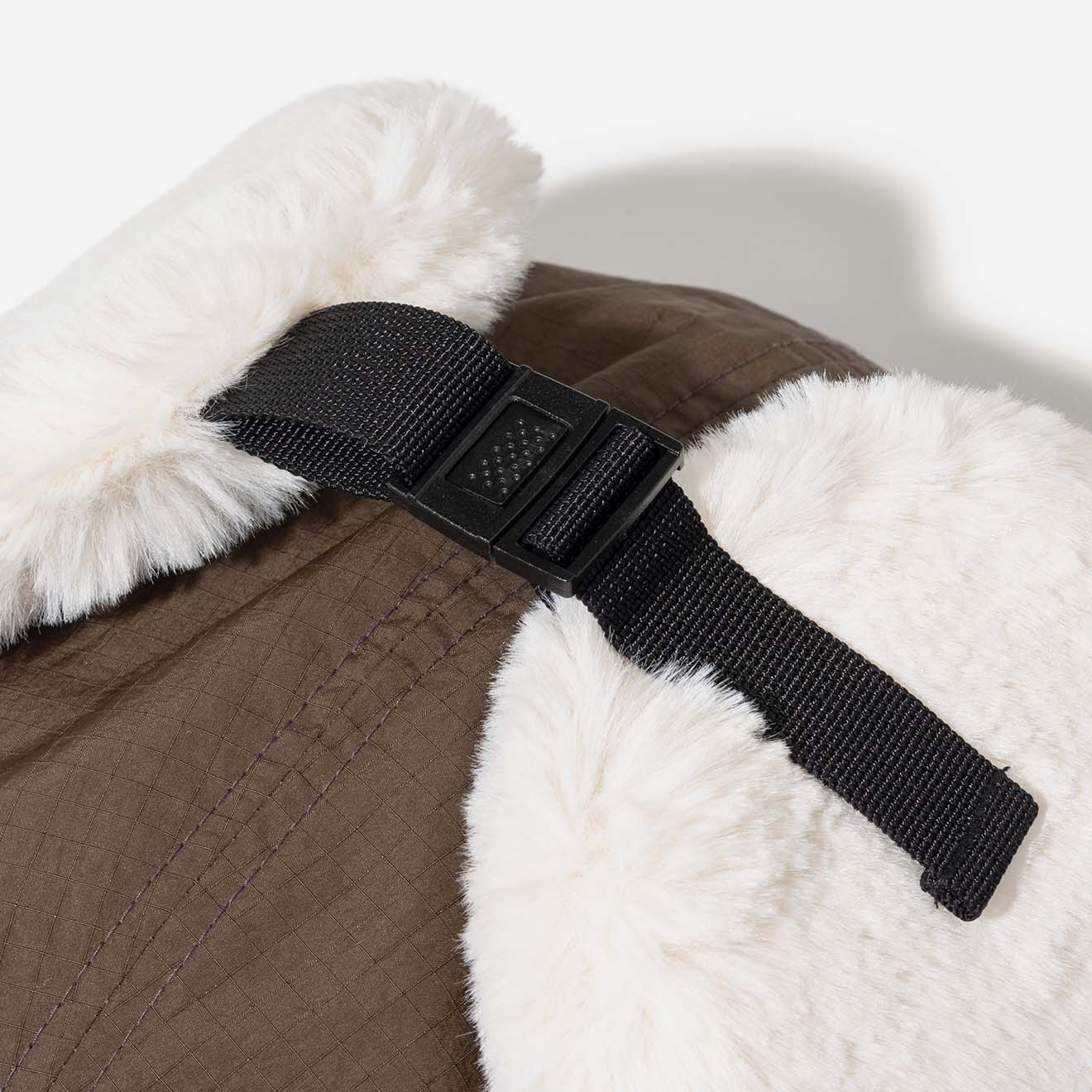 耳当部分は頭頂部で止められるバックルつき