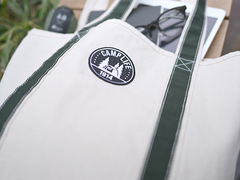 創業年とロッジロゴをデザインしたワッペンがアクセントに